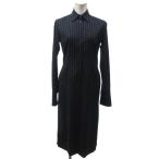 ラルフローレン RALPH LAUREN 美品 シャツワンピース 長袖 ロング丈 ストライプ 黒 ブラック 4 約S