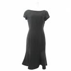 ラルフローレン パープルレーベル RALPH LAUREN PURPLE LABEL ワンピース 半袖 膝丈 ウール マーメイドライン ボートネック 6 黒 1007 レデ