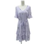 未使用品 ローレンラルフローレン ワンピース ひざ丈 6 M 紫 ラベンダー 花柄 Vネック 半袖 リボンベルト付き /YS26 ■GY61 レディース