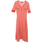 LAUREN RALPH LAUREN ローレンラルフローレン ボーダー柄 半袖 スキッパーカラー ニット ロングワンピース M オレンジ レディース 古着 中古
