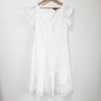 美品 LAUREN RALPH LAUREN ローレンラルフローレン フリルスリーブ ひざ丈 フレア レースワンピース ドレス 4サイズ ホワイト レディース 古着 中古