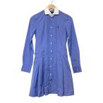 美品 POLO RALPH LAUREN ポロラルフローレン ポニー刺〓 長袖 ひざ丈 白襟 フレア シャツワンピース 0 ブルー レディース 古着 中古