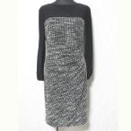 良品 LAUREN RALPH LAUREN ローレンラルフローレン 長袖 ひざ丈 ツイードドッキング ワンピース タイトドレス 0 ブラック レディース 古着 中古