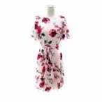 ローレンラルフローレン ワンピース ミモレ丈 半袖 ラウンドネック 花柄 マルチカラー リボン 2 S ピンク /SY44 IBO83 レディース
