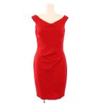 ローレンラルフローレン LAUREN RALPH LAUREN タイトワンピース ひざ丈 ノースリーブ Vネック ストレッチ ワンカラー 4P 赤 ■BM