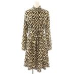 ローレンラルフローレン LAUREN RALPH LAUREN ワンピース ロング丈 ミモレ丈 長袖 総柄 フレア 長袖 00 XXS ベージュ 黒