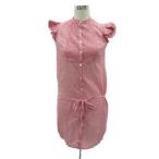 ポロジーンズ ラルフローレン シャツワンピース バンドカラー フリル ひざ丈 ノースリーブ M ピンク リボンベルト ■GY58 レディース