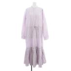 ポロ バイ ラルフローレン Polo by Ralph Lauren ストライプシャツワンピース バンドカラー 裾プリーツ 長袖 マキシロング 6 L 紫