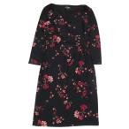 美品 LAUREN RALPH LAUREN ローレンラルフローレン 花柄 ワンピース 長袖 ハーフ 膝丈 カシュクール ストレッチ 6 ブラック レッド レディース 古着 中古
