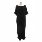 ローレンラルフローレン LAUREN RALPH LAUREN ワンピース M リブニット 5分袖 マキシ ロング ロゴ刺繍 黒 ブラック /AE ■GY53
