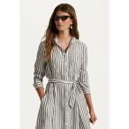 ラルフローレン ワンピース レディース トップス BELTED STRIPED LINEN A LINE SHIRTDRESS - Shirt dress - white/brown