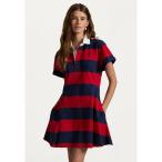 ラルフローレン ワンピース レディース トップス STRIPED COTTON JERSEY RUGBY DRESS - Jersey dress - polo sport red/newport navy