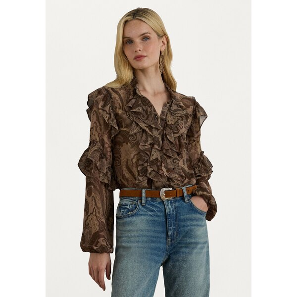ラルフローレン レディース Tシャツ トップス PAISLEY RUFFLE-TRIM CHIFFON BLOUSE - Long sleeved top - taupe