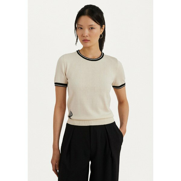 ラルフローレン レディース Tシャツ トップス TWO TONE SHORT SLEEVE SWEATER - Basic T-shirt - mascarpone cream/black
