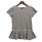 ポロ ラルフローレン POLO RALPH LAUREN ボーダー ペプラム Tシャツ 半袖 コットン ブラック オフホワイト S レディース