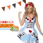 ハロウィン コスプレ ゴスロリ 小悪魔 コスチューム レディース 大人 衣装 仮装 ドレス カチューシャ リストバンド 3点セット