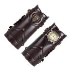 中世のアームブレース メンズ PUレザー ガントレット リストバンド ステージパフォーマンス用 ブラウン