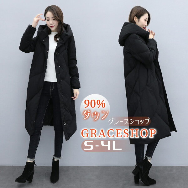 大きいサイズ ベンチコート ダウンジ ジャケット ロング フード 90%ダウン ダウンコート アウター レディース ハイネックコート
