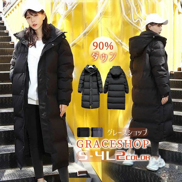 ダウンコート レディース ブラック 黒 グレー ロング 男女兼用 ベンチコート フード 防風 防水 大きいサイズ ハイネックコート