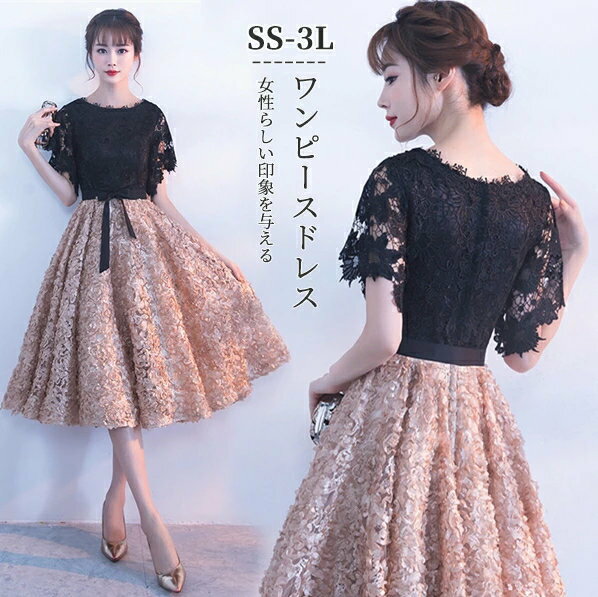 ドレス 大人 ピアノ発表会 高校生 中高生 演奏会 ロングドレス 結婚式 母親 合唱ドレス フェミニン パーティードレス ミモレ丈 袖あり お呼ばれ代代 可愛い 大きいサイズ レース号号号号 謝恩会 同窓会 女子会 小さいサイズ