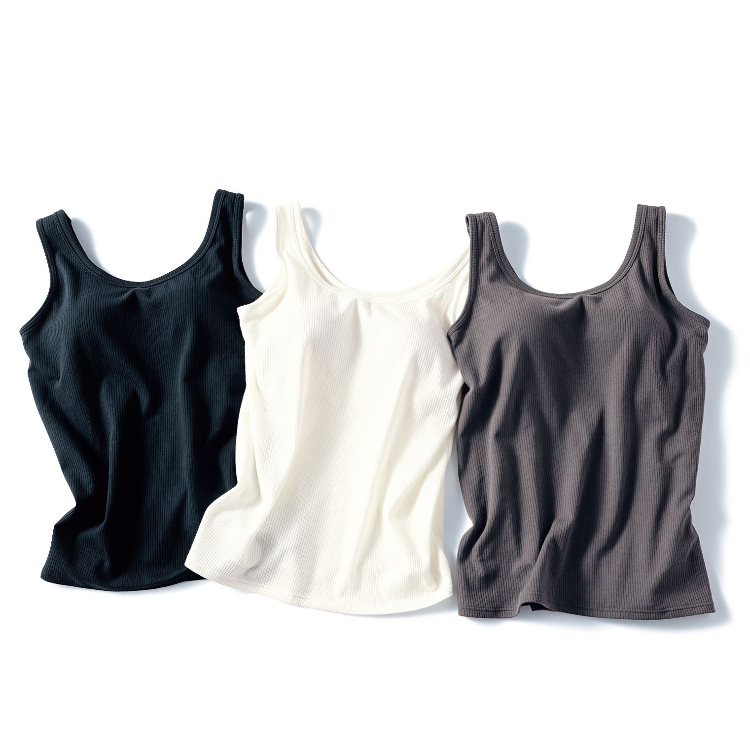タンクトップ ノースリーブ カップインリブタンクトップ レディース