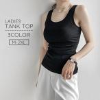 タンクトップ レディース 女性 婦人服 トップス Uネック ノースリーブ 重ね着 インナー リブ 無地 単色 シンプル 定番 ベーシック 大きいサイズ