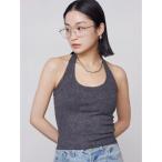 タンクトップ ノースリーブ ホルターネックリブタンクトップ レディース