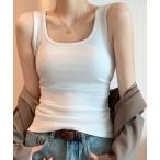 タンクトップ ノースリーブ ランダムリブスクエアタンクトップ レディース