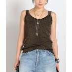 タンクトップ ノースリーブ メタリックリブニット(ゴールド) レディース