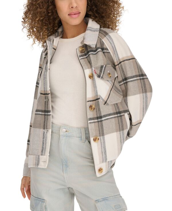 リーバイス レディース アウター ジャケット・ブルゾン ウール シャツ ジャケット Levi's Women's Wool Blend Shirt Jacket Grey Plaid グレー