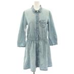 リーバイス Levi's デニムワンピース シャツワンピース ミニ 水色 ライトブルー 七分袖 ウエストギャザー /HN レディース