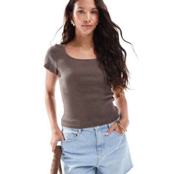 リーバイス Levi's リーバイスのエッセンシャルスクエアネックTシャツ(ブラウン) トップス レディース 女性 インポートブランド 小さいサイズから大きいサイズまで