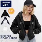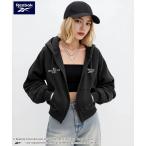 パーカー 「別注」Reebok/リーボック ブランド ロゴ 刺繍 フルジップ クロップド丈 裏起毛 スウェット パーカー フーディー レディース