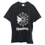 リーボック Reebok Tシャツ カットソー ラウンドネック 半袖 ロゴプリント M 黒 ブラック オフホワイト /HO14 レディース