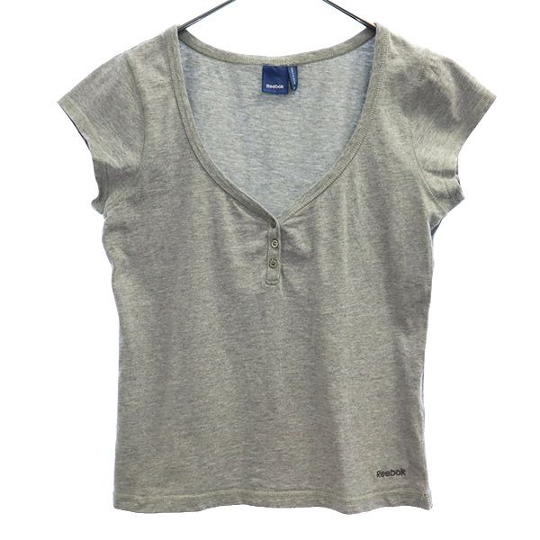 Reebok リーボック 刺繍 半袖 Tシャツ 10 グレー フレンチスリーブ レディース 古着 中古