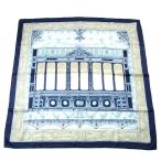 【ブラックフライデー30%OFFクーポン】ルイヴィトン スカーフ 大判サイズ レディース 街景色柄 限定 グレー×ネイビー系 中古