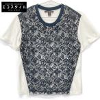 【美品】LOUIS VUITTON ルイ・ヴィトン カットソー LV モノグラム レース デザイン ショートスリーブ トップス インナーキャミソール一体型 レディース サイズ 34 ブラック 黒 伊製【中古】