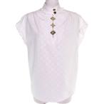 極美品△LOUIS VUITTON ルイヴィトン コットン100% フレンチスリーブ モノグラム フリル ブラウス ホワイト 36 伊製 正規品 レディース
