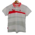ルコックスポルティフ ポロシャツ トップス 半袖 ボーダー ゴルフウエア レディース Lサイズ 白×グレー×オレンジ le coq sportif 【中古】
