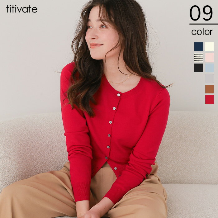 【20%OFF!2/4(水)限定】titivate コットンウールブレンドVネックカーディガン トップス レディース カーディガン ウール混 シンプル サイドスリット 長袖 羽織り セットアップ【UR’S ユアーズ】 トップス