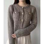 カーディガン ゴールド釦ツイードニットカーディガン レディース