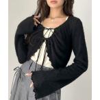 カーディガン 「forksy.」前後2way ボリュームスリーブ バイカラーフリンジショートニットカーディガン レディース