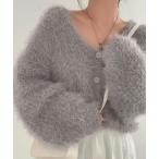 カーディガン 「ふわふわメレンゲニット」ボリュームスリーブパールボタンVカーディガン レディース