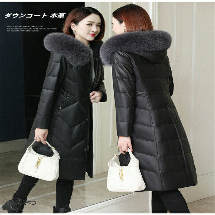 【Fashion SALE10%OFF】レザーコート フォックスファー ロング丈 ダウンコート ラムレザーコート 本革 ダウン 羊革コート レディースアウター フード付き レディースコート ロング丈ダウンジャケット 冬防寒 アウター 送料無料