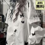 レディース シャツ 原宿系 蝶プリント 袖取り外し かわいい