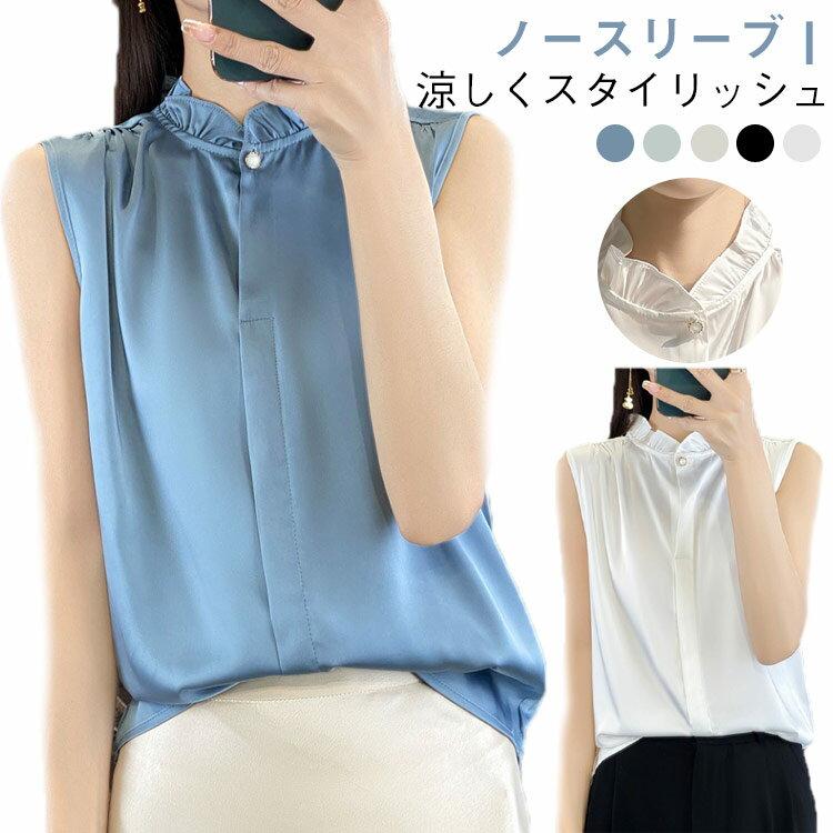 レディースシャツ ノースリーブブラウス 上品 ノースリーブブラウス きれいめ ノースリーブ サマーシャツ フリル ブラウス 夏 フォーマル オフィス 立ち襟 通勤 シンプル 無地 白 黒