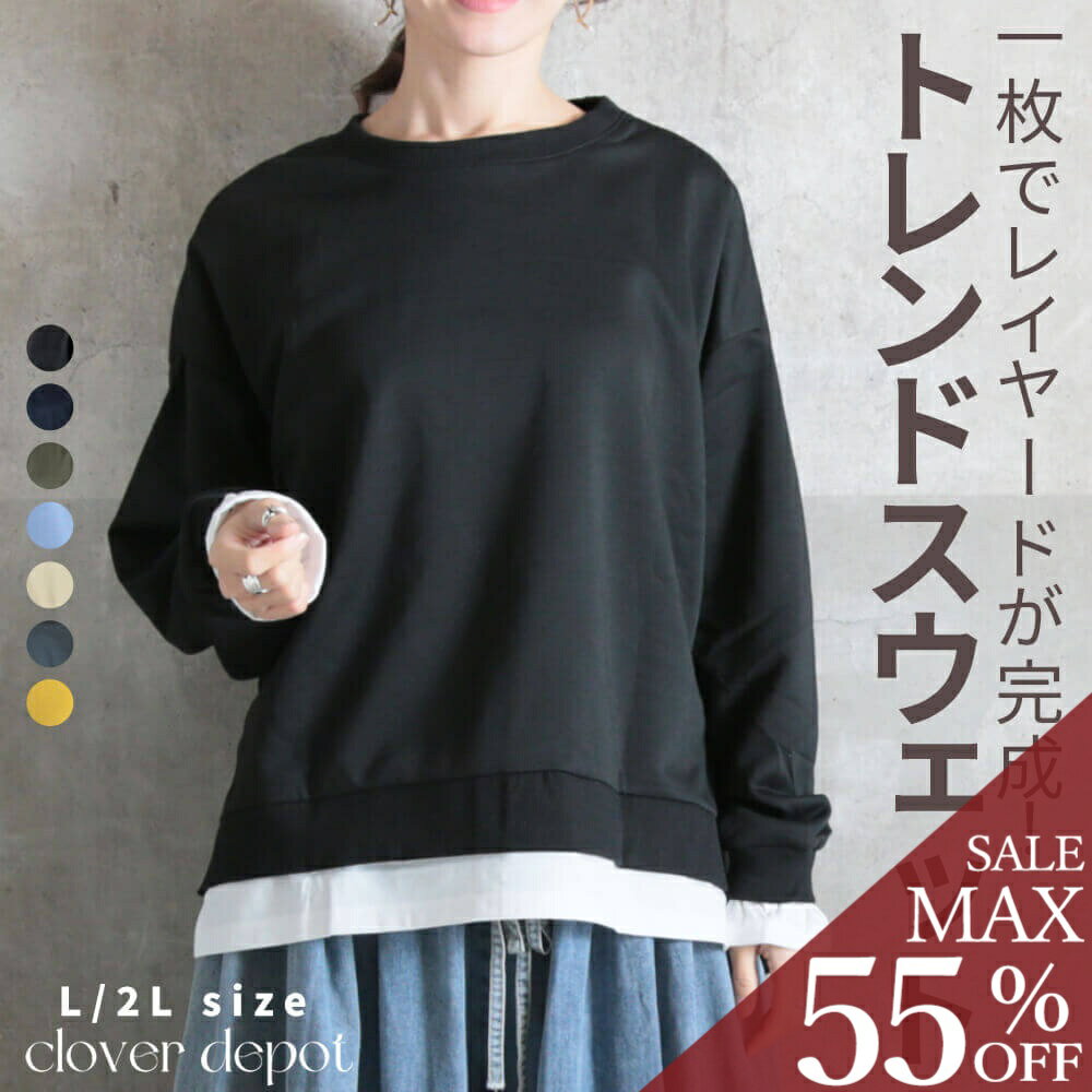 トレーナー レディース スウェット トップス 無地 おしゃれ 大きいサイズ 韓国 切り返し 重ね着風 シャツ風 体系カバー レディース ゆったり レイヤード シンプル ゆる カジュアル 普段着 可愛い 柔らかい 着心地 韓国風