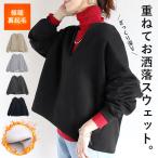 トレーナー レディース スウェット トップス 無地 おしゃれ 大きいサイズ 韓国 切り返し 重ね着風 シャツ風 体系カバー レディース ゆったり レイヤード シンプル ゆる カジュアル 普段着 可愛い 柔らかい 着心地 韓国風