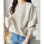 トレーナー スウェット ビジューワッペンボートネックスウェット レディース