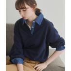 トレーナー スウェット デニム襟 ドッキング フェイクレイヤード スウェット トップス レディース